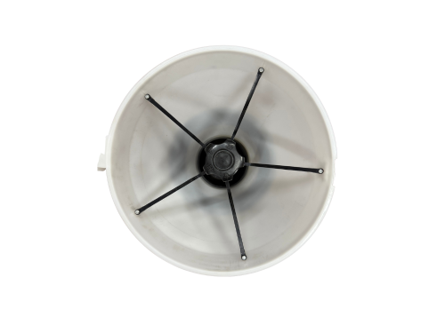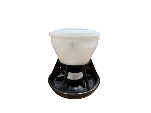 COMEDERO SEGUNDA EDAD BLANCO Y NEGRO 15L — solo usar para la primera y segunda semana después de destetar (precebo). 15kg de capacidad. Diámetro del plato: 45cm, Alto: 48cm, 7 divisiones.